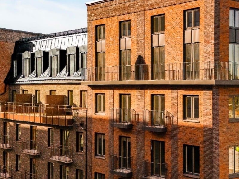 Lägenheten har genomgående parkettgolv i ek, vitmålade väggar, fönsterbänkar i natursten och vita släta innerdörrar.