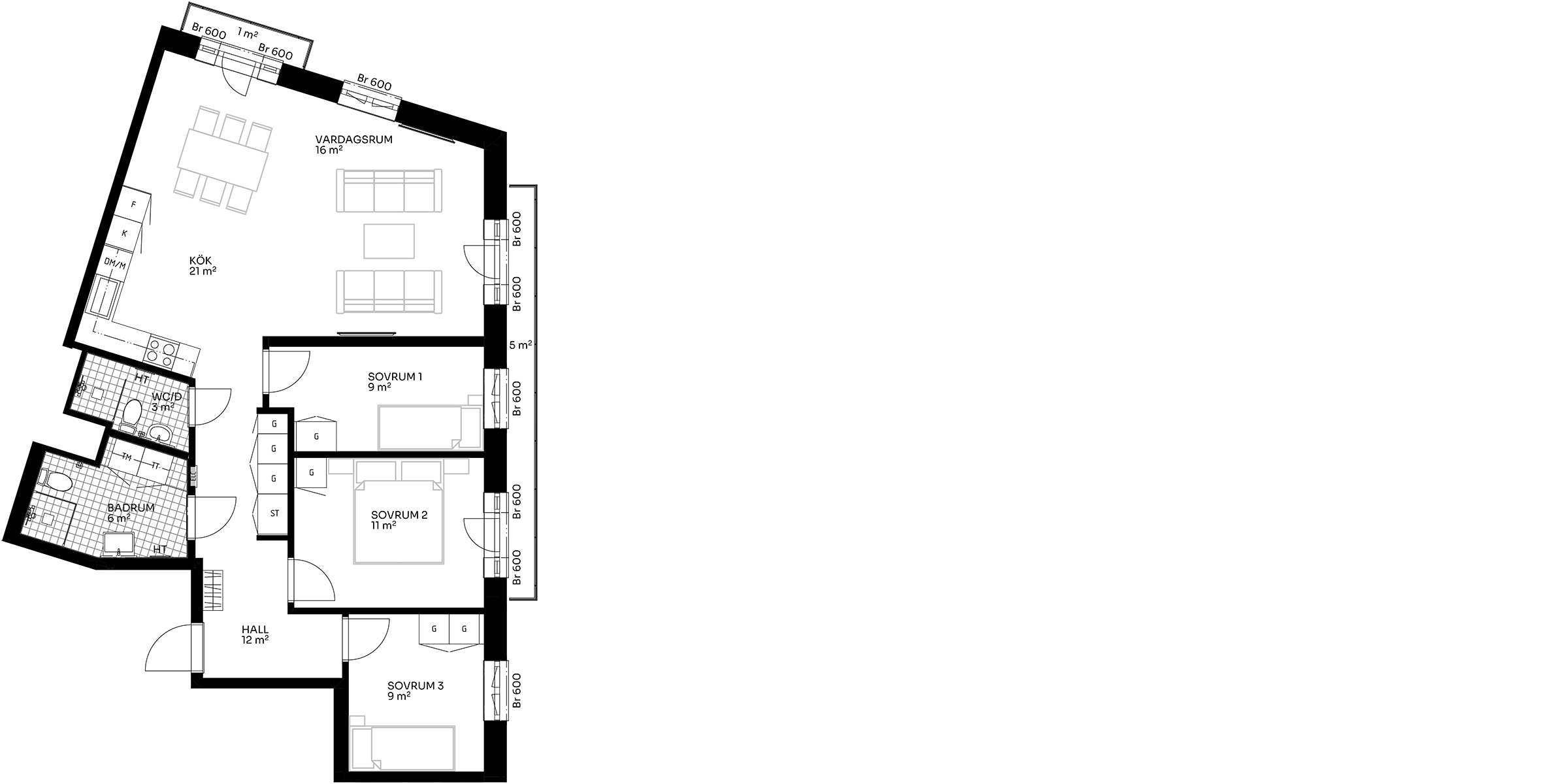 Välkommen till denna fyrarummare om 91 kvm som erbjuder ett hem där funktion, rymd och kvalitet samspelar i en helhet. Planlösningen är tydligt uppdelad med sociala ytor i ena delen av bostaden och sovrummen mer avskilt placerade.