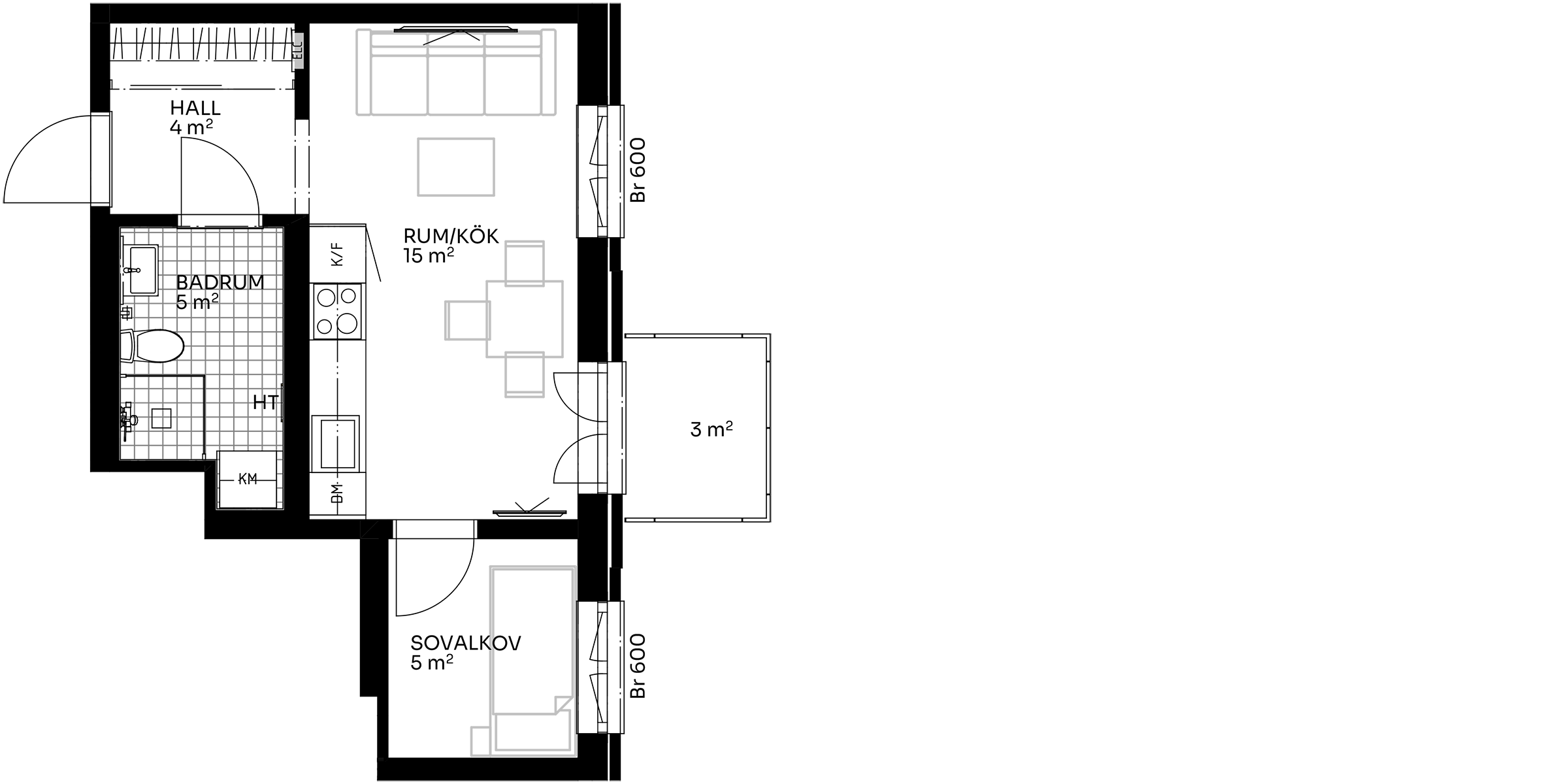 1 rum och kök