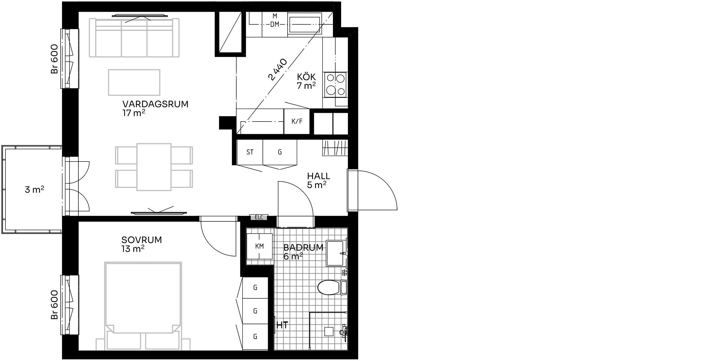 Välkommen till en modern tvåa om 49 kvm där varje kvadratmeter är genomtänkt. Lägenheten har en tydlig uppdelning mellan social del och sovrum, vilket skapar ett praktiskt och funktionellt hem. Takhöjden om 2,70 meter tillsammans med stora fönsterpartier ger ett fint ljusinsläpp och en luftig känsla.