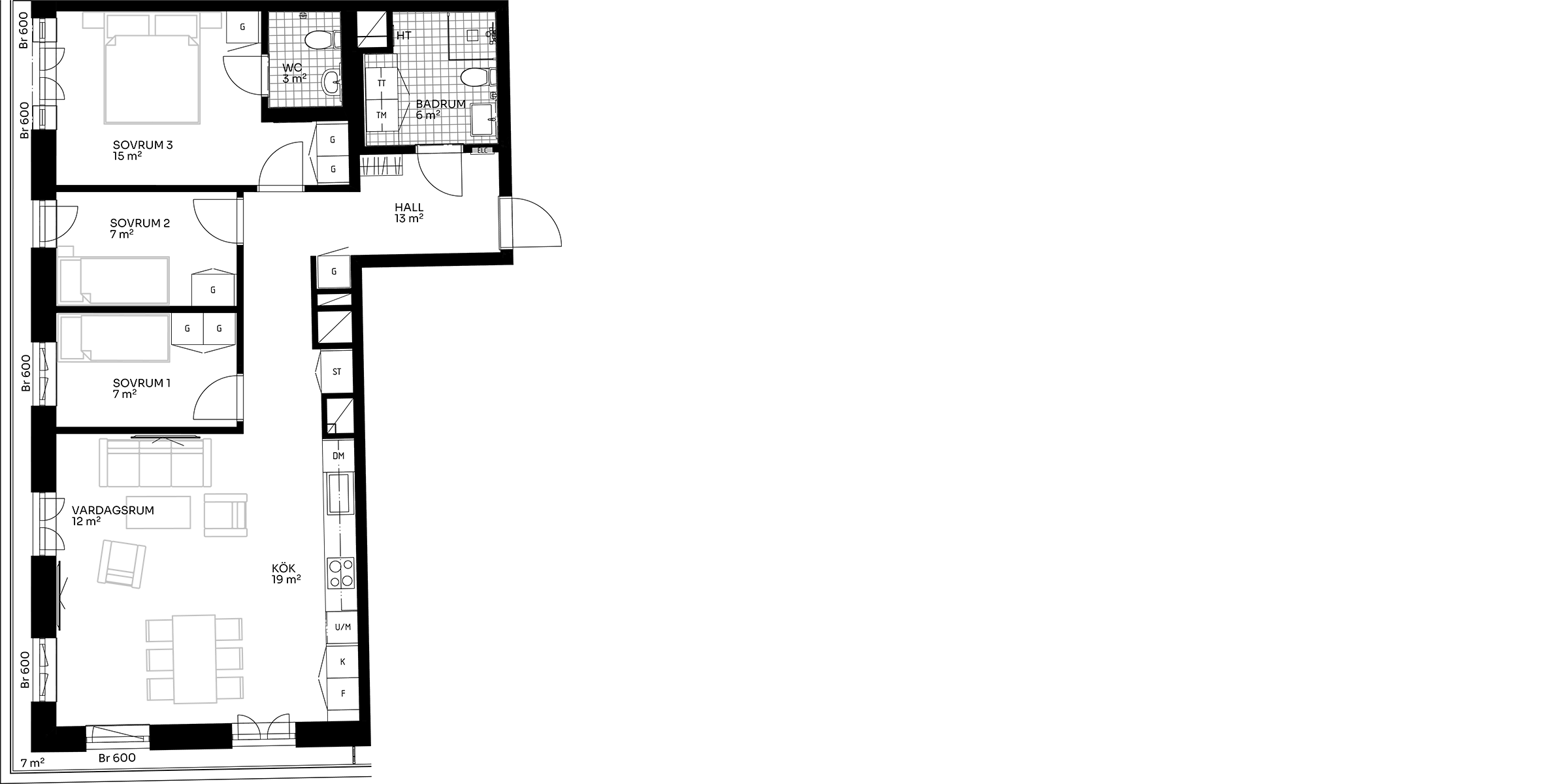 Välkommen till en rymlig och välplanerad fyrarummare om 85 kvm, belägen i gavel med en imponerande kungsbalkong som sträcker sig längs hela fasaden. Här bor du i en bostad som kombinerar sociala ytor, privata rum och påkostade materialval – med en generös takhöjd om 2,70 meter som förstärker känslan av rymd.